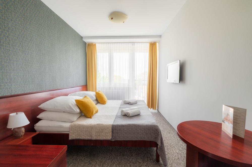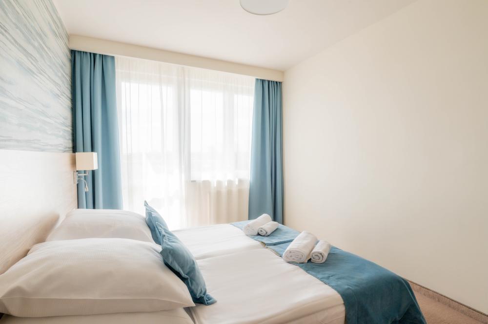 Obiekt dysponuje komfortowymi pokojami – jedno-, dwuosobowymi, rodzinnymi oraz apartamentami, wyposażonymi w niezbędne udogodnienia, takie jak telewizor, lodówka, czajnik, suszarka do włosów, ręczniki, biurko oraz dostęp do bezpłatnego Wi-Fi. Każdy pokój posiada prywatną łazienkę z kabiną prysznicową. Część pokoi została dostosowana do potrzeb osób z ograniczoną mobilnością - windy, poręcze i szerokie przejścia ułatwiają swobodne poruszanie się po obiekcie. Dzięki temu pobyt w Alka Sun Resort jest komfortowy zarówno dla osób aktywnych, jak i dla seniorów czy osób korzystających z turnusów rehabilitacyjnych.